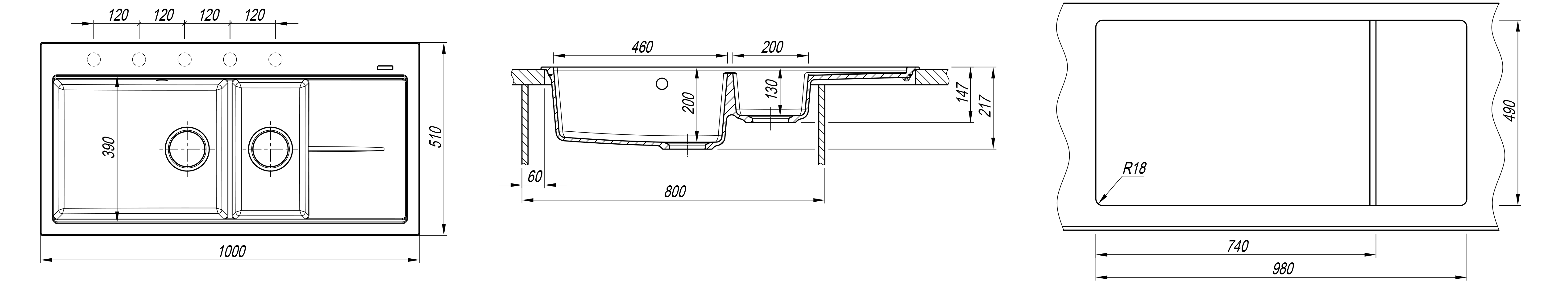 Мойка кухонная Florentina накладная россана 1000x510x217 Черный