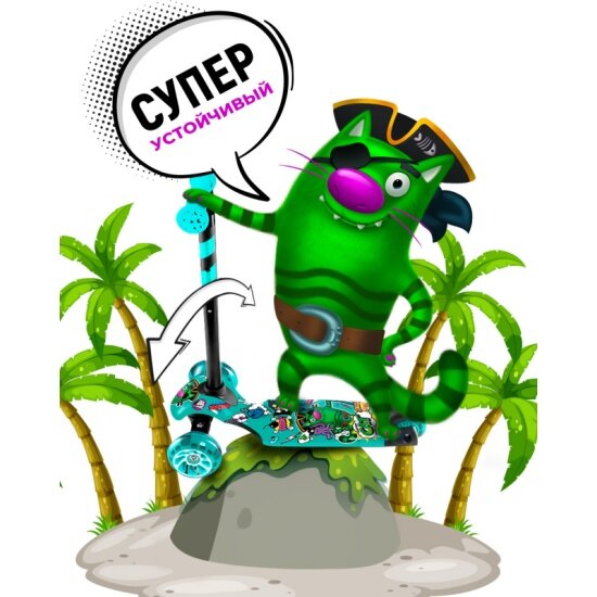 Детский трехколесный самокат Small Rider Turbo 2 Cartoons (аква, зеленый кот), 1643763 информация: