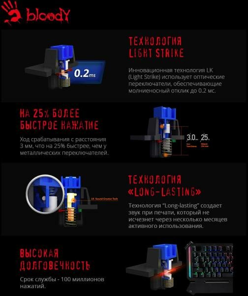 Клавиатура A4Tech Bloody B885n черный .
