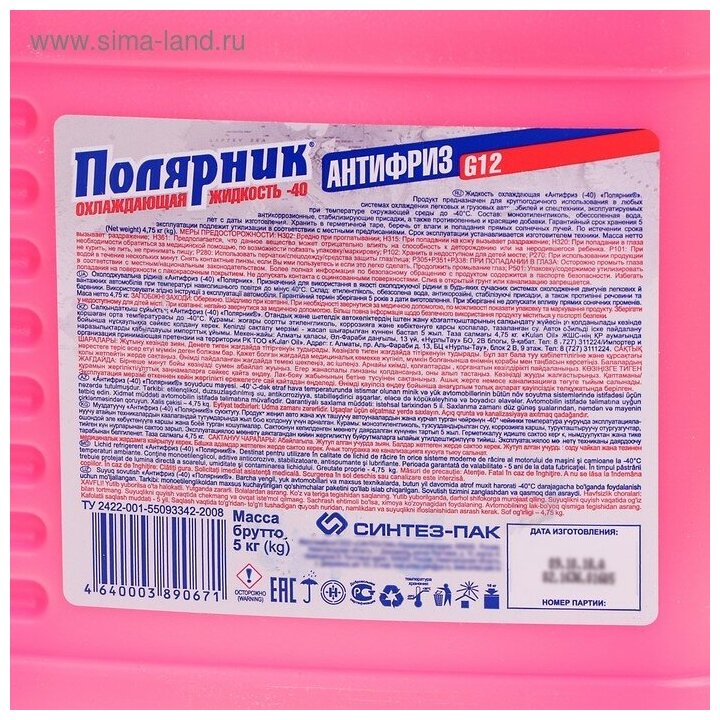 10 цен на Антифриз Полярник(-40) G12 (красный) 5кг