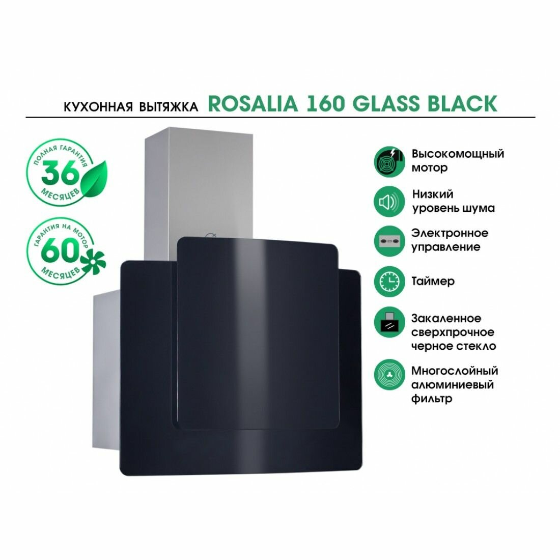 Кухонная вытяжка MBS ROSALIA 160 GLASS BLACK информация: