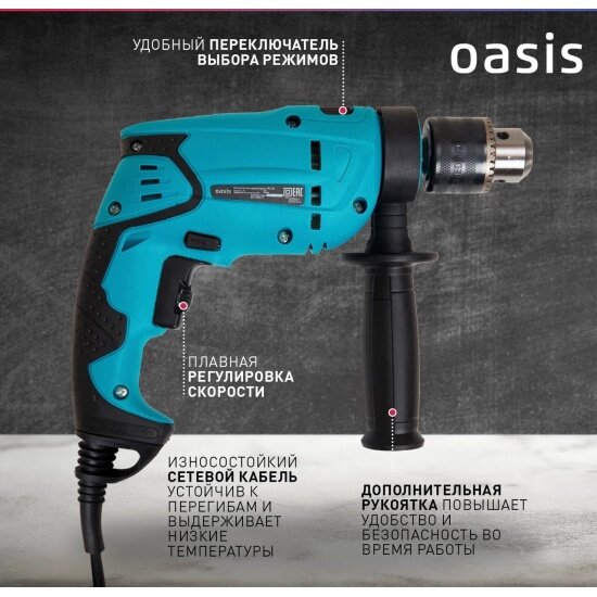 Ударная дрель Oasis DU-60, 600 Вт синий 3 500 ₽