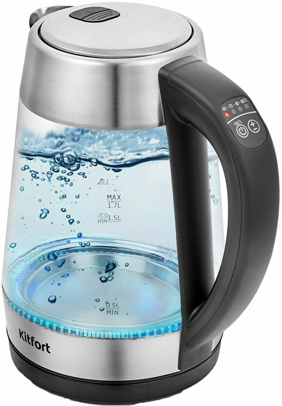 Чайник KITFORT КТ-6107, 1,7 л, 2200 Вт, закрытый нагревательный элемент, терморегулятор, стекло, черный