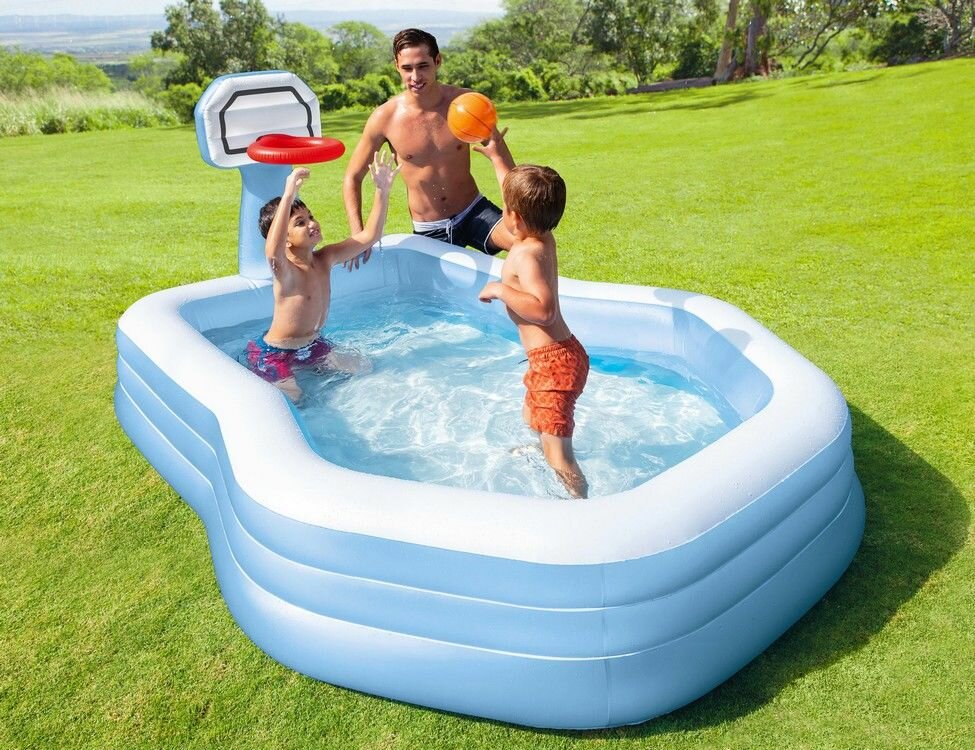 Отзывы на Надувной семейный бассейн INTEX Баскетбол, 257х188х130 см, от 3 лет, 57183