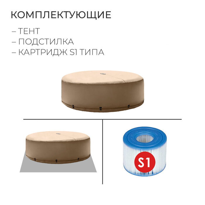 Бассейн 196 x 71 см, Intex Pure Spa Bubble Massage 28476, теплосберегающий тент 84 416 ₽