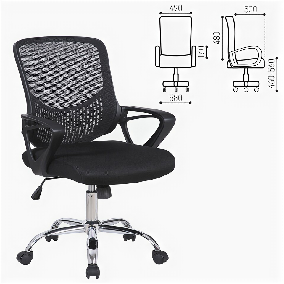 Кресло BRABIX "Next MG-318", с подлокотниками, хром, черное, 531834 информация: