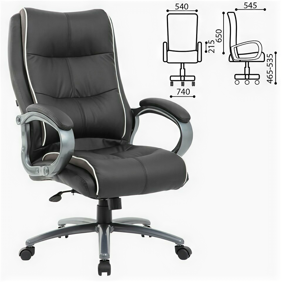 Компьютерное, офисное, удобное кресло для руководителя с подлокотниками Brabix Premium Strong HD-009, до 200 кг, экокожа черная, ткань серая, 531945
