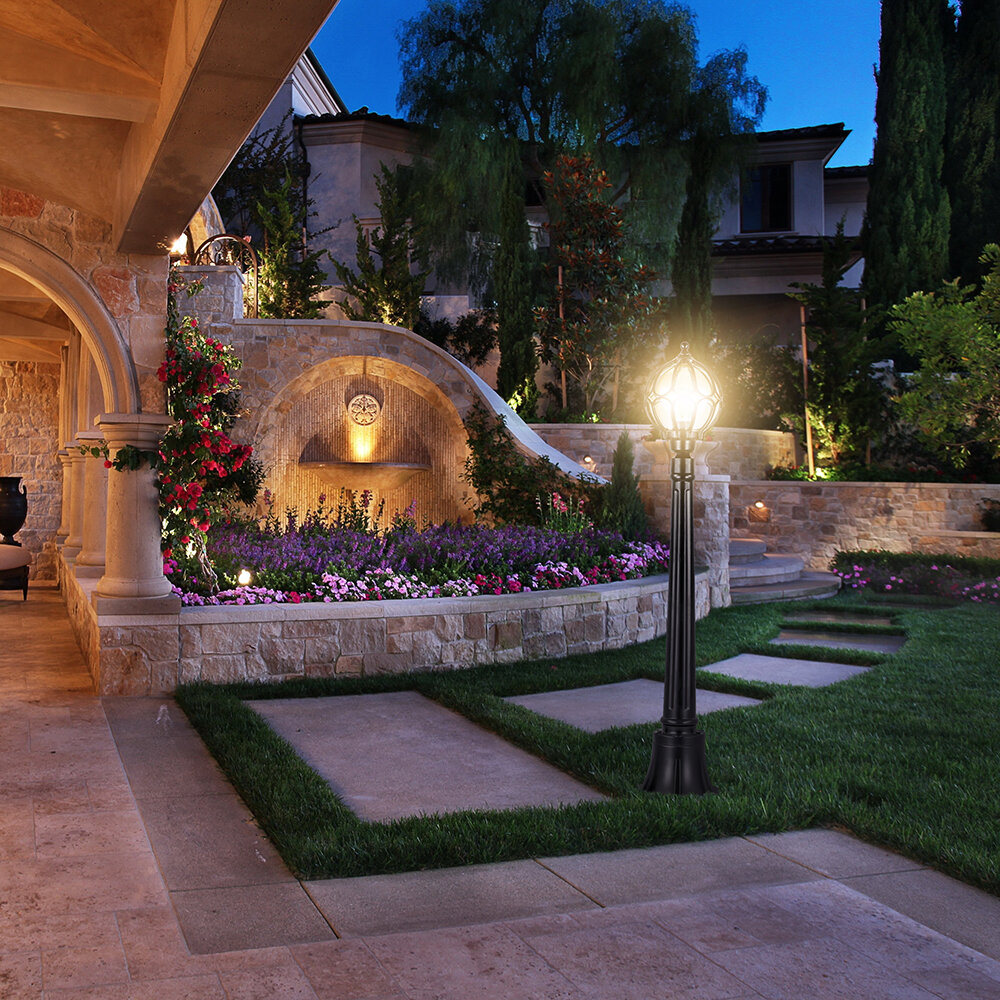 Светильник 11374 PL3706 220В Е27 столб h-1,0м шар Версаль чёрное золото IP44 (Feron)
