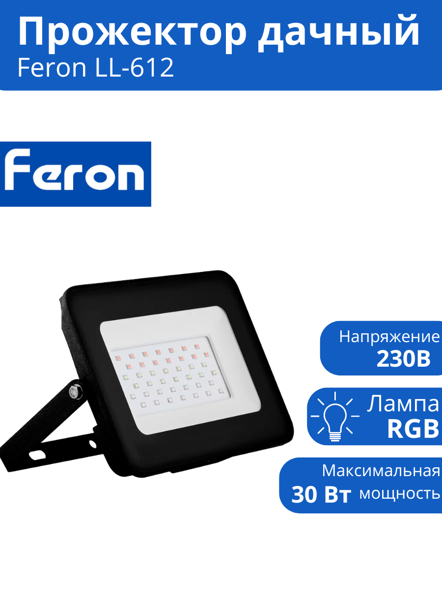 Прожектор светодиодный Feron LL-612 29702, 30 Вт, свет: RGB