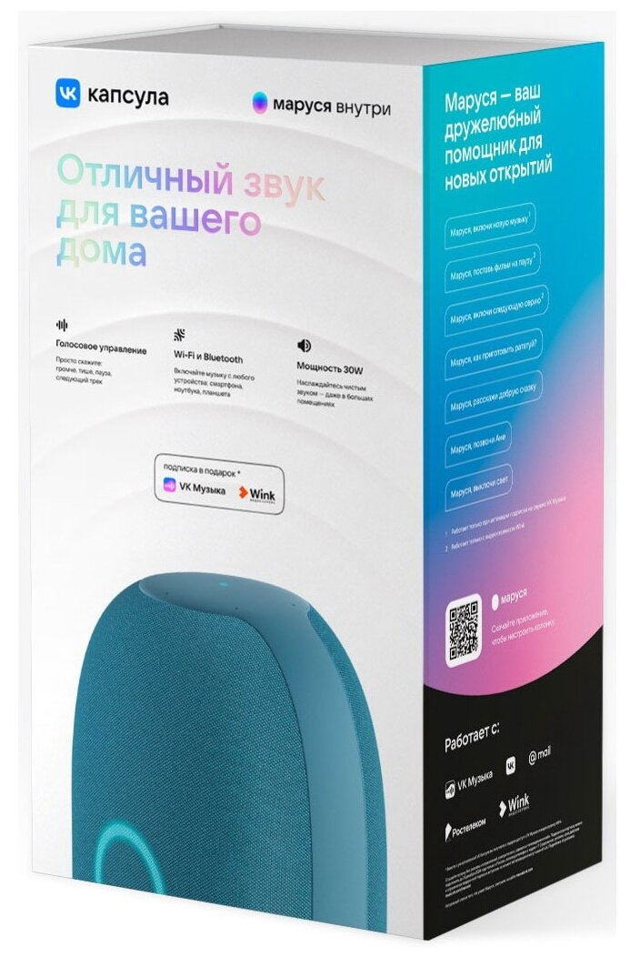 Умная колонка VK Капсула с голосовым помощником Марусей синяя информация: