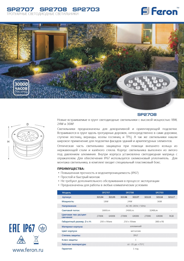Мы выбрали 10 лучших цен на Светодиодный светильник тротуарный (грунтовый) Feron SP2708 24W 6400К IP67 32137. Перед тем как купить Светодиодный светильник тротуарный (грунтовый) Feron SP2708 24W 6400К IP67 32137 посмотрите найденные предложения из Яндекс Маркета и других сайтов на основе XML фидов.