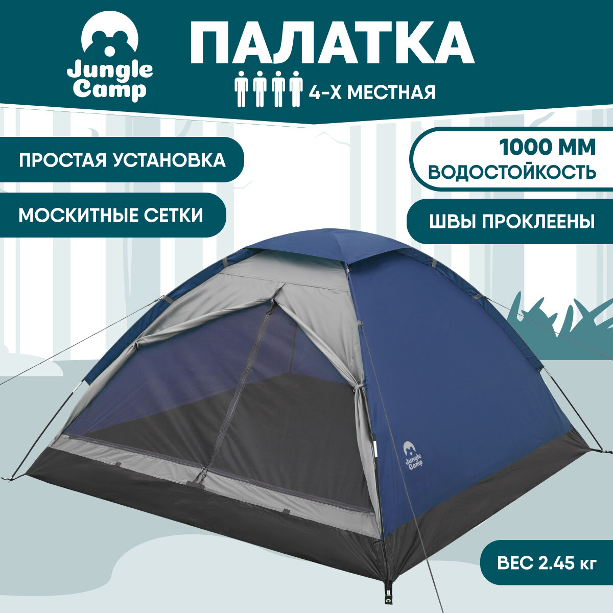 Палатка четырёхместная JUNGLE CAMP Lite Dome 4, цвет: синий/серый