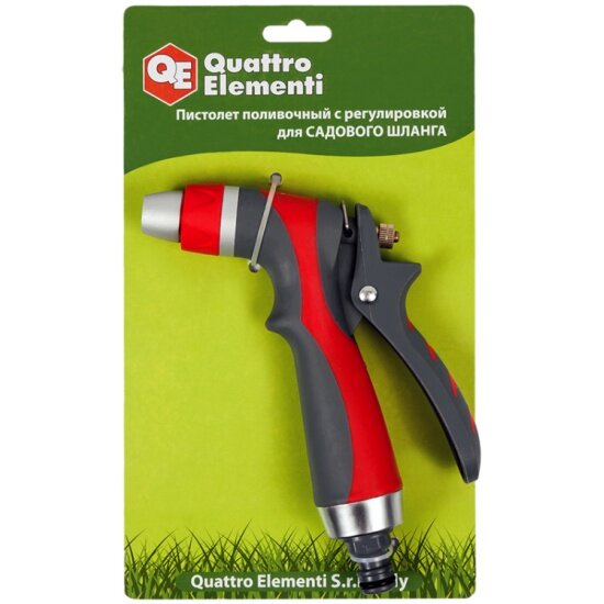 Пистолет поливочный QUATTRO ELEMENTI 1-режимный металл + мягкий пластик, регулировка напора (1режим, металл+мягк. пластик, регулировка напора)