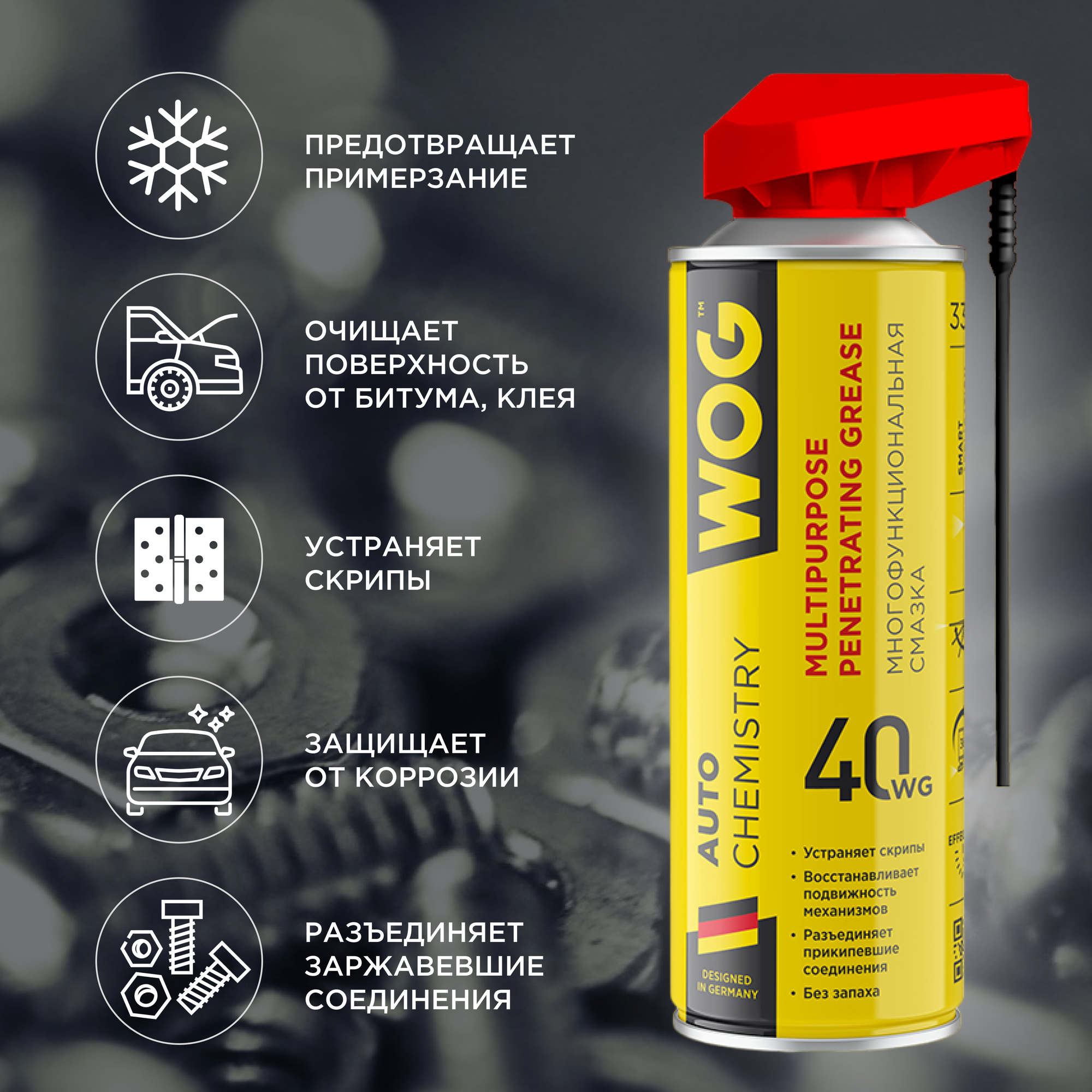 WOG : WGC0301 Многоцелевая универсальная проникающая смазка WOG WG-40 (WD40) с профессиональным распылителем 2 в 1, 335 мл