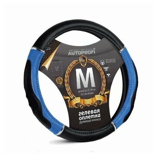AUTOPROFI GL1020BKBLM Оплетка на руль M "AUTOPROFI" гелевый наполнитель, черный/синий (хром-кольца, рельеф под пальцы)