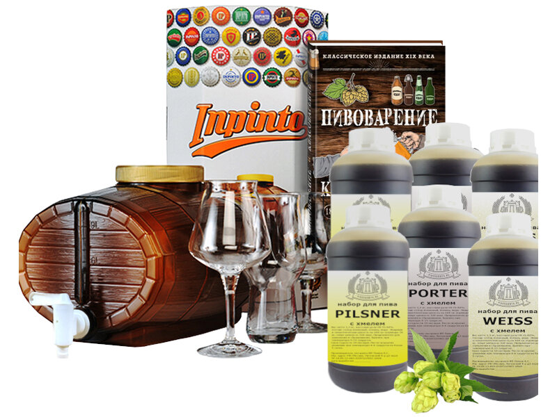 | Дополнительная информация | также в комплекте: 3 комплекта солодового экстракта (Indian Pale Ale, Belgian Ale и Stout), чистящее средство Neodisher Cl, сухие дрожжи, подробная инструкция на русском языке, 3 хрустальных дегустационных бокала (гастрономический, классический, крафтовый), книга "Пиво, вино и сидр в домашних условиях. Секреты приготовления", ареометр АС-25 |