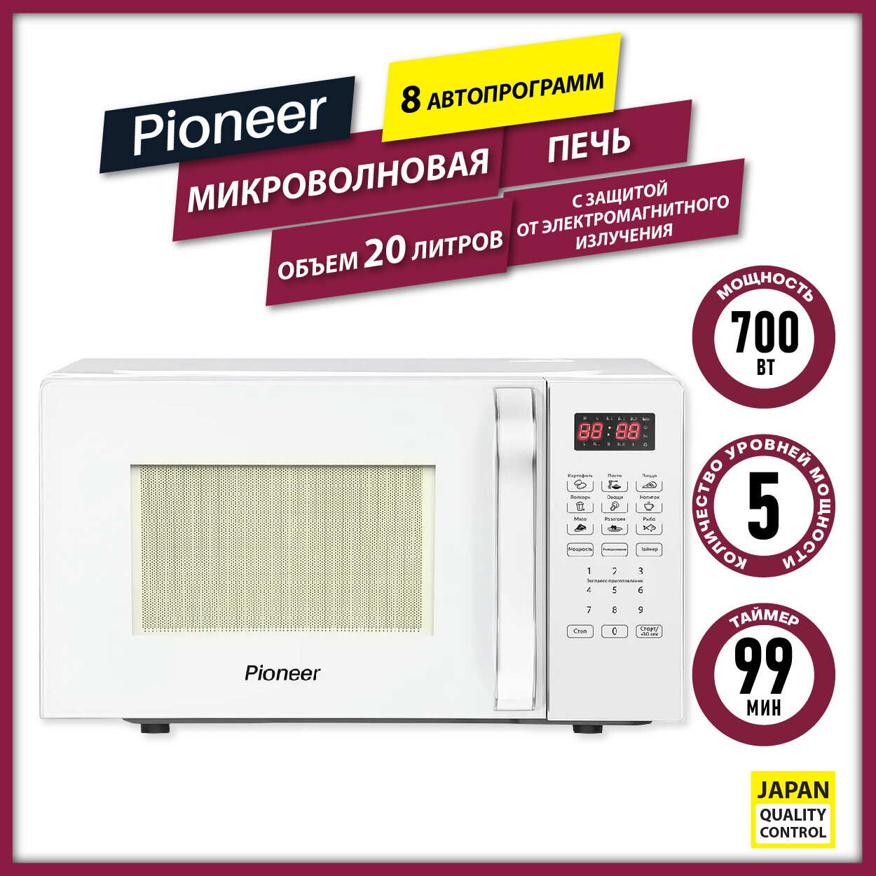 Микроволновая печь Pioneer c защитой от электромагнитного излучения, 20л, 700Вт, LED дисплей, 8 программ, сенсорное управление, гарантия 2 года