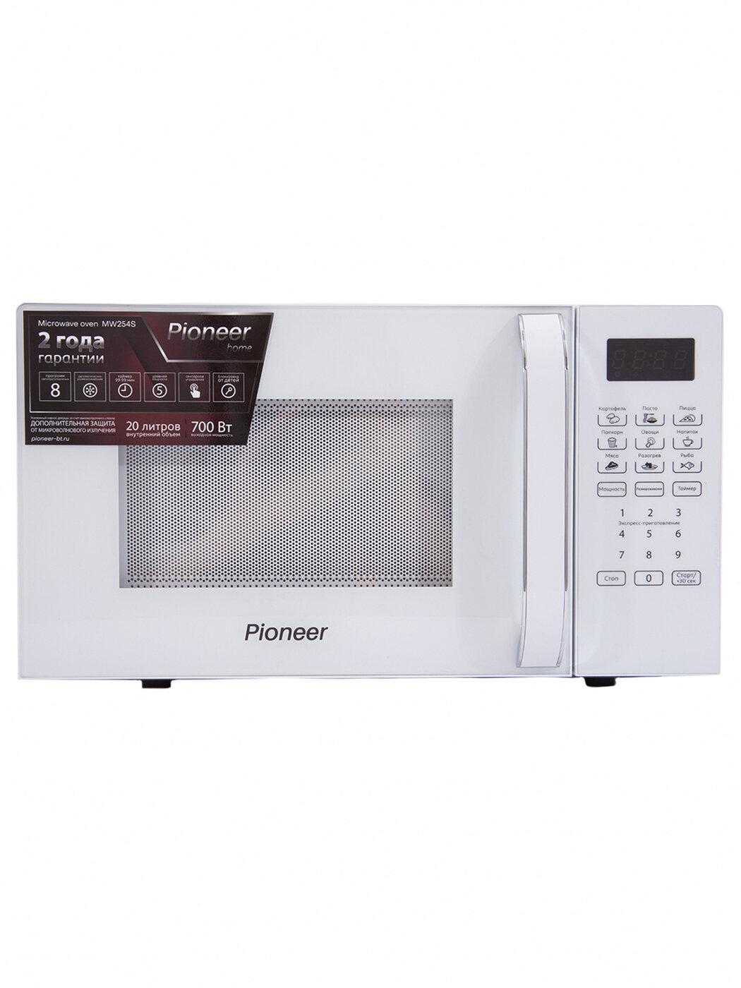 Микроволновая печь Pioneer MW254S c защитой от электромагнитного излучения, 20л, 700Вт, LED дисплей, 8 программ, сенсорное управление, гарантия 2 года