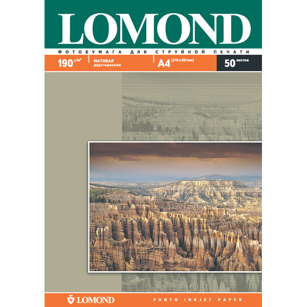 Lomond 0102015 Двусторонняя Матовая/Матовая фотобумага для струйной печати, A4, 190 г/м2, 50 листов.