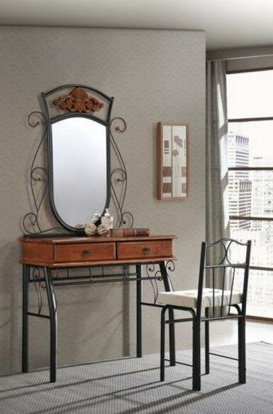 Столик туалетный CANZONA (столик/зеркало + стул)Цвет: метлл - чёрный, дерево - красный дуб