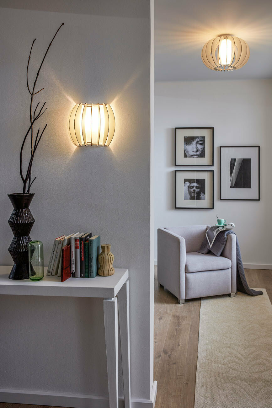 Бра STELLATO 2, 1х60W (E27), L285, H250, A140, сталь, белый/дерево, стекло, белый