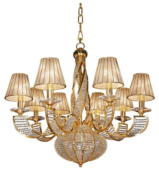 Люстра хрустальная золотая подвесная круглая с прозрачными хрустальными подвесками на 8 ламп E27, регулировка по высоте