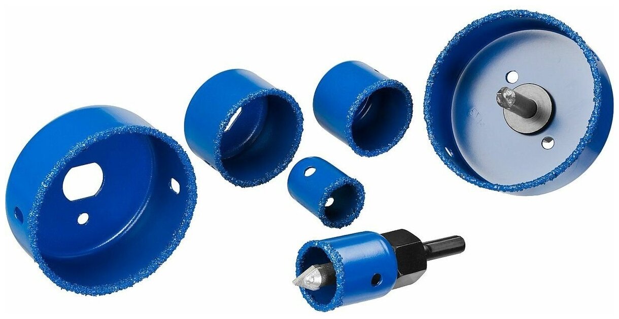 ЗУБР 6 шт.: D 22, 28, 35, 44, 68, 73 мм, L - 25 мм, карбид-вольфрамовая крошка, набор коронок-чашек с оснасткой ( 33360-H6_z01 ) 1 778 ₽