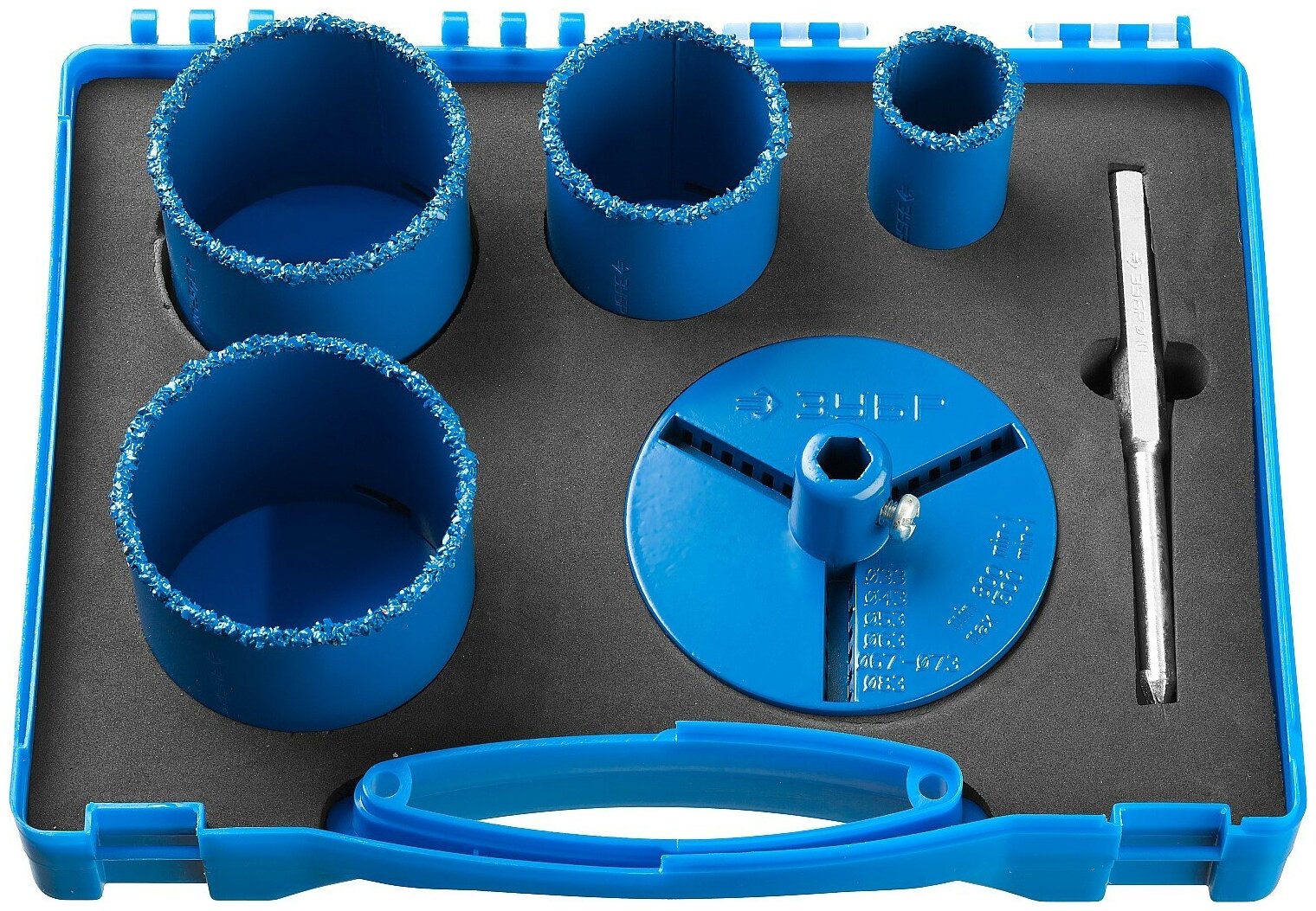 Отзывы на Набор кольцевых коронок ЗУБР "профессионал" c карбид-вольфрамовым нанесением, 6 предм. в кейсе: коронки d 33, 53, 67, 73 мм, основание, сверло 33350-H6_z01