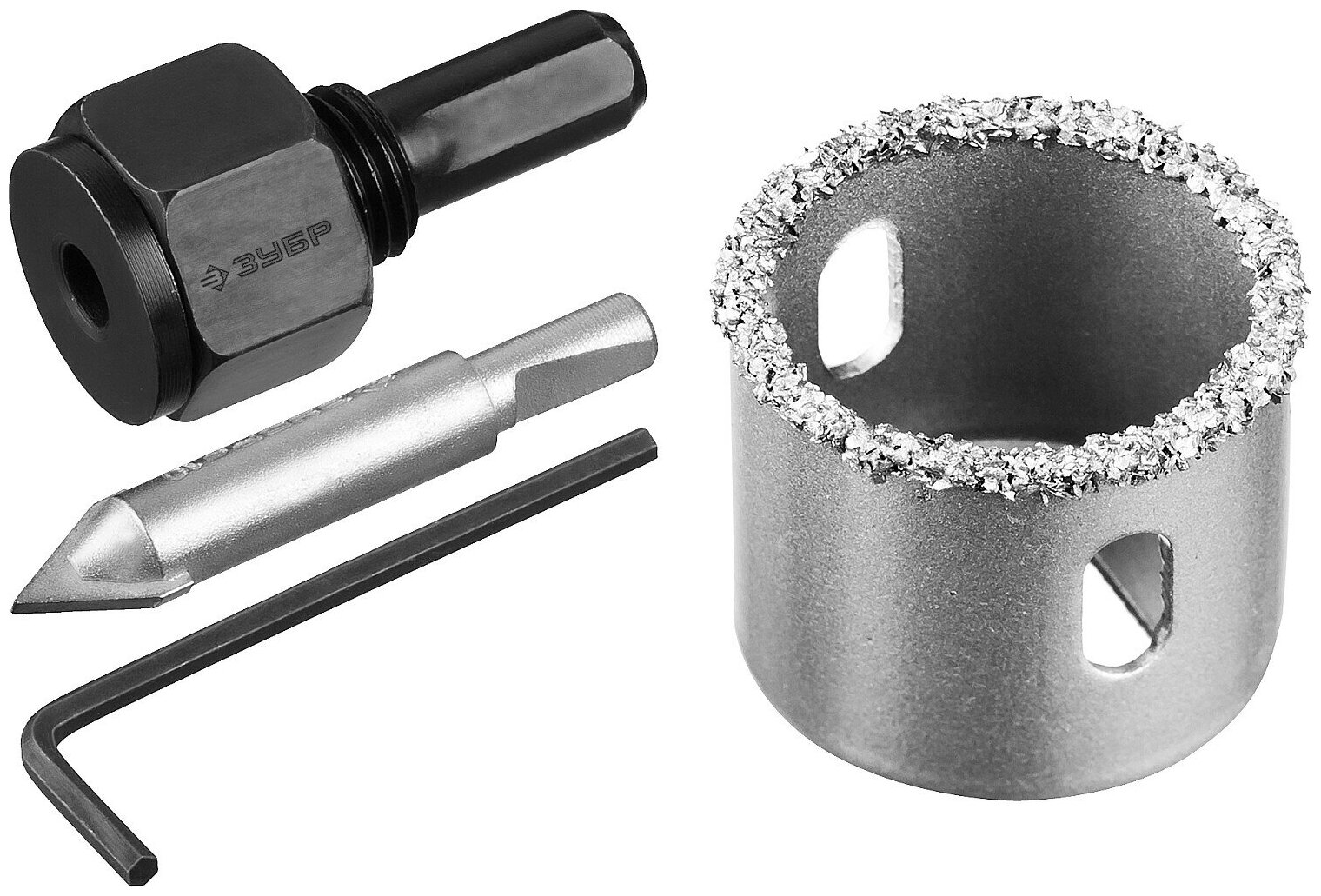 ЗУБР D 38 мм, L - 25 мм, карбид-вольфрамовая крошка, в сборе с державкой и сверлом, коронка-чашка ( 33360-038_z01 )