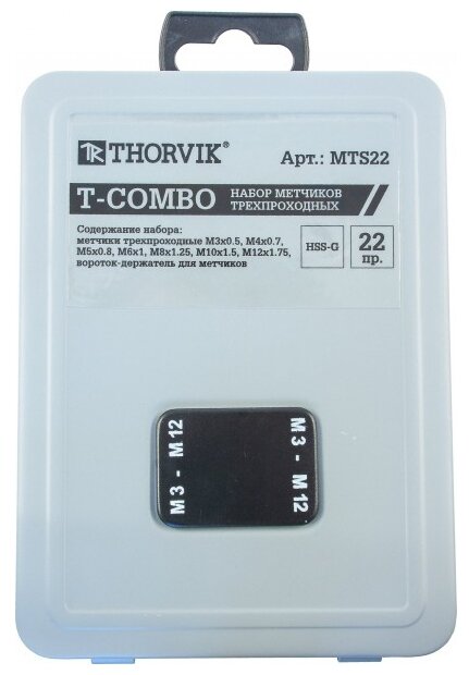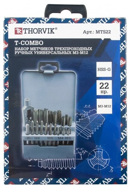 10 цен на Набор Метчиков T-Combo Трехпроходных Ручных Универсальных М3-М12, Hss-G, 22 Предмета Thorvik THORVIK арт. MTS22