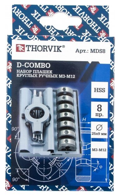 Thorvik Набор плашек D-combo круглых ручных М3-м12, Hss, 8 предметов MDS8 52885 . информация: