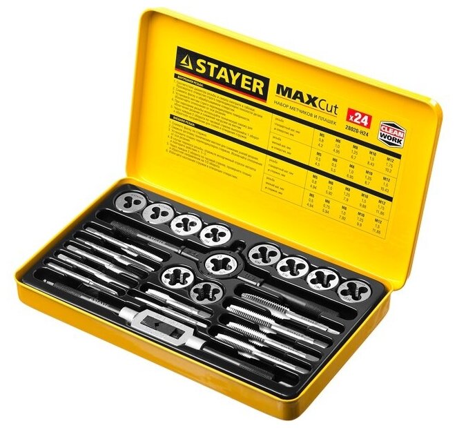 Набор Stayer 28020-H24 Master метчикодерж., плашкодерж., метчики 11шт, плашки 11шт, 24 пред. 28020- информация: