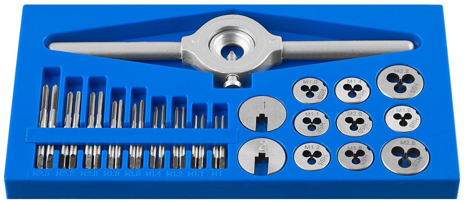 ЗУБР 31 предмет, набор метчиков и плашек малых размеров, сталь 9ХС информация: