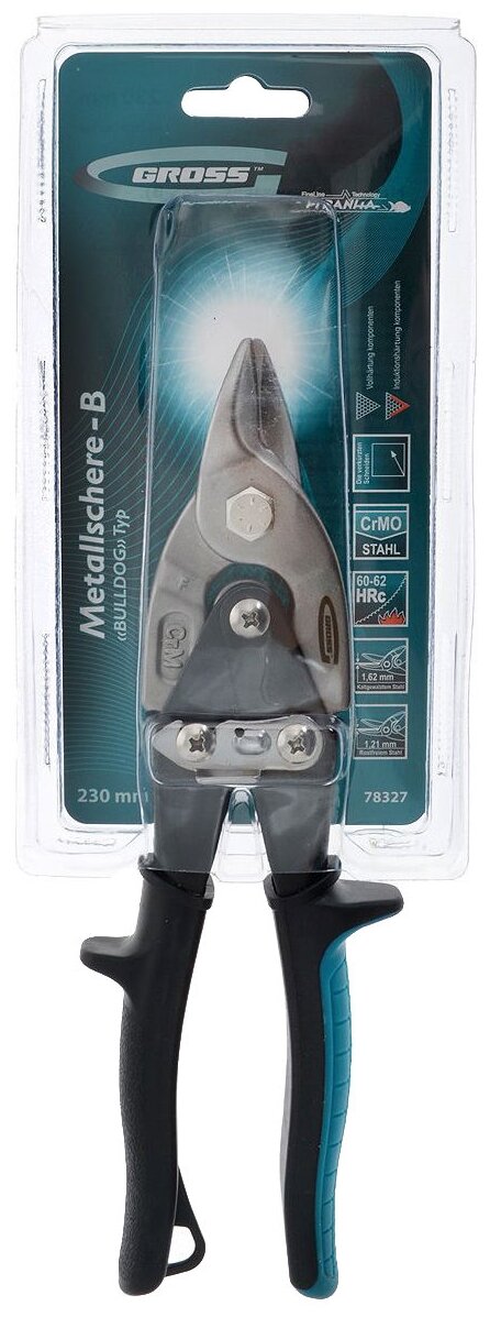 Отзывы на Ножницы по металлу "PIRANHA",230мм,прямой усил.рез (BULLDOG),сталь-СrMo,двухкомп.рук-ки// Gross 7832