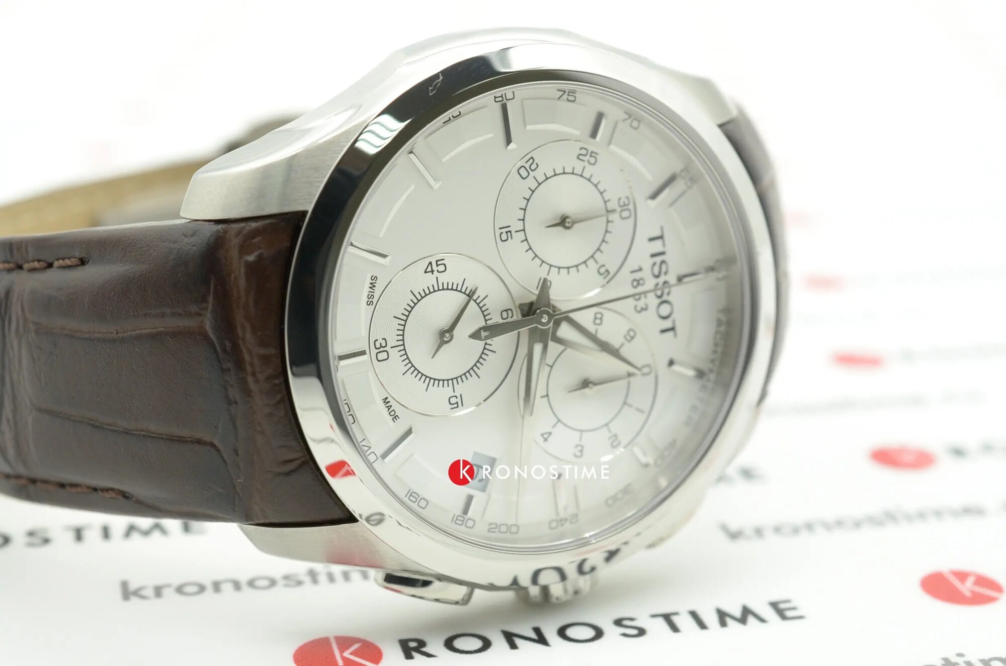Швейцарские кварцевые часы Tissot Couturier Chronograph T035.617.16.031.00 на кожанном браслете, с водозащитой 10 бар и международной гарантией от производителя 76 200 ₽