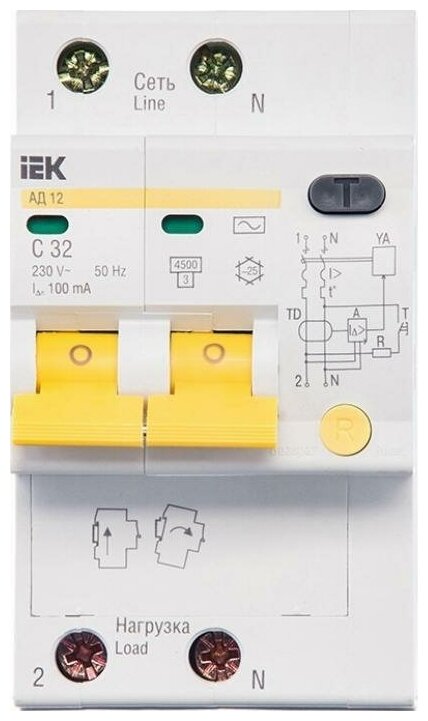 Дифференциальный автоматический выключатель АД12 2Р 32А 100мА IEK информация: