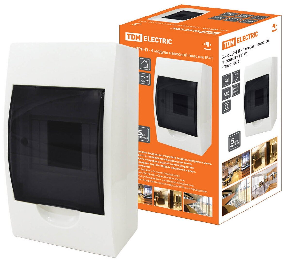 Бокс ЩРН-П-4модуля навесной пластик IP41, TDM SQ0901-0001 (1 шт.)