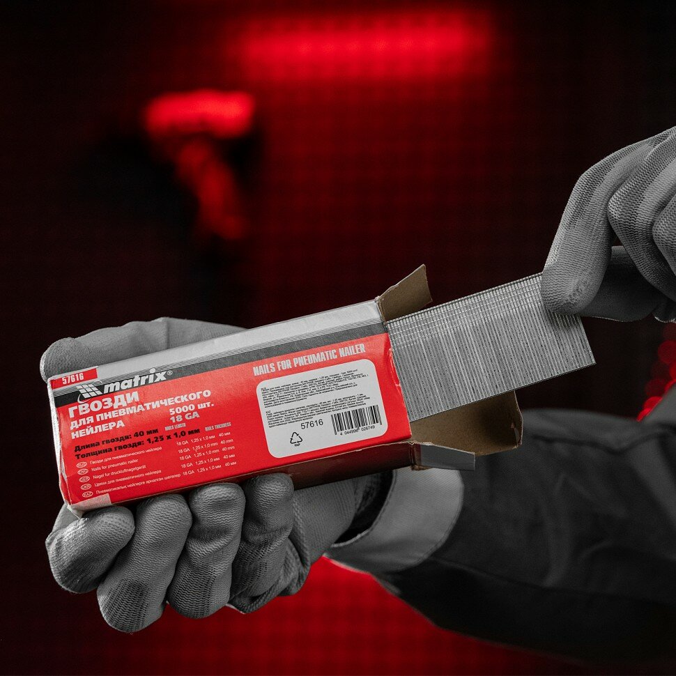 MATRIX Гвозди для пневматического нейлера, длина 40 мм, ширина 1,25 мм, толщина 1 мм, 5000 шт Matrix, ( 57616 )