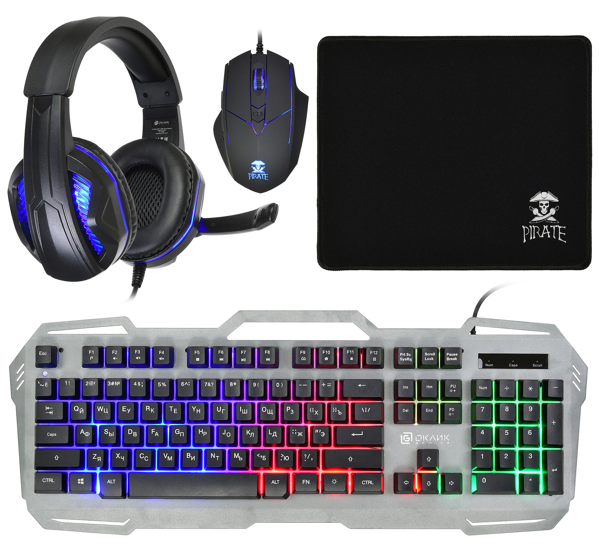 Игровой комплект Oklick HS-HKM300G PIRATE информация: