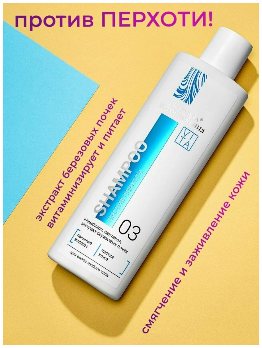 Формула преображения шампунь для волос против перхоти с климбазолом, пантенолом и экстрактом березовых почек, 250 мл