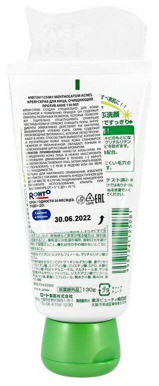 Японская очищающая пенка-скраб для лица против акне Mentholatum Acnes Scrub информация: