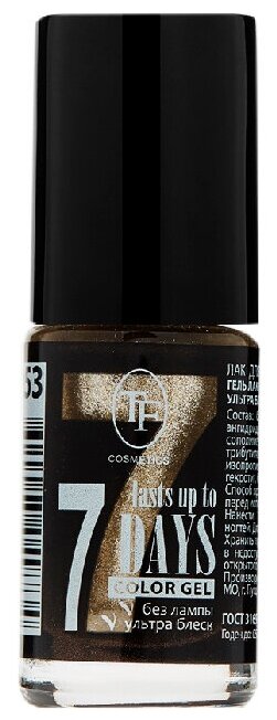 TF cosmetics Лак для ногтей 7 Days, 301 Драгоценный металл, 8 мл