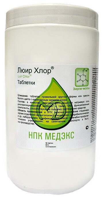 Хлорные таблетки для дезинфекции люир хлор, таблетки 300 шт., 1 кг. 815 ₽