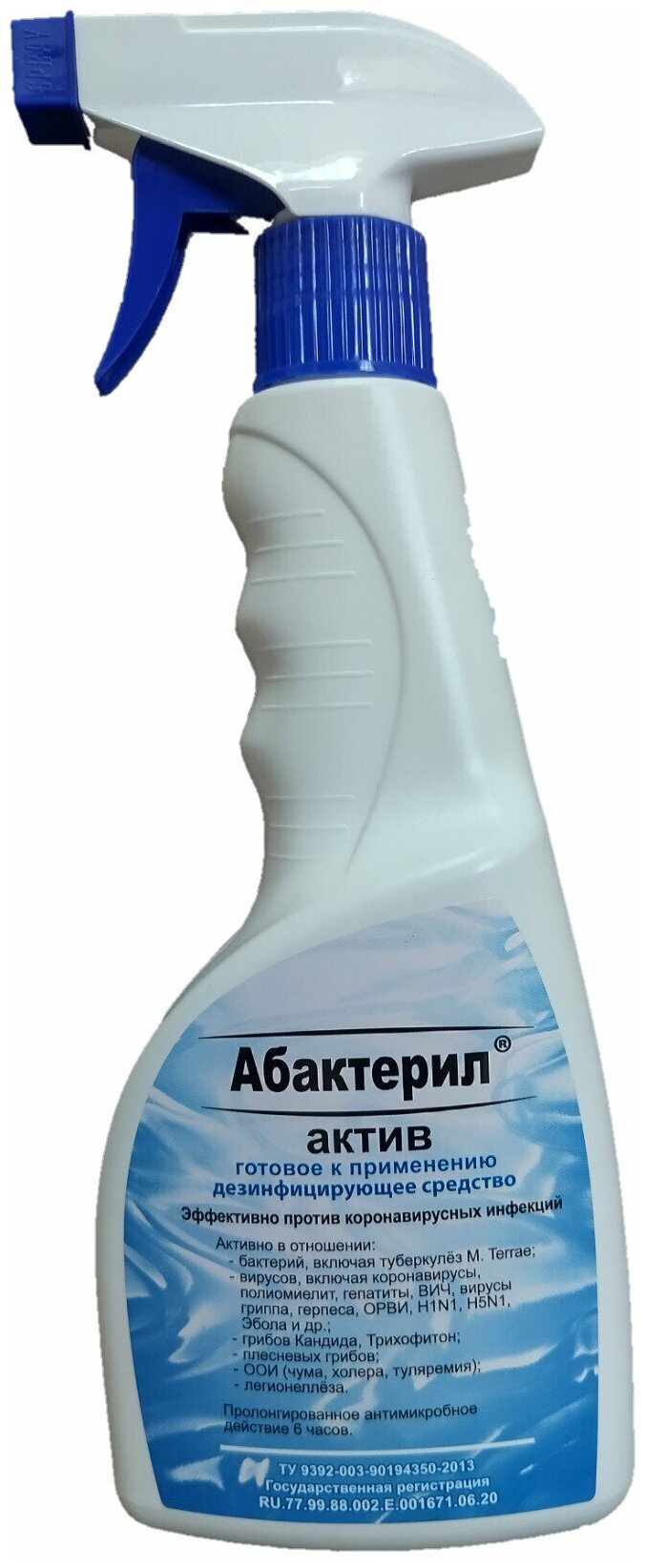 1 шт. Кожный антисептик с вирулицидной активностью ГОСТ 12.1.007-76 Абактерил-Актив 500 мл спрей