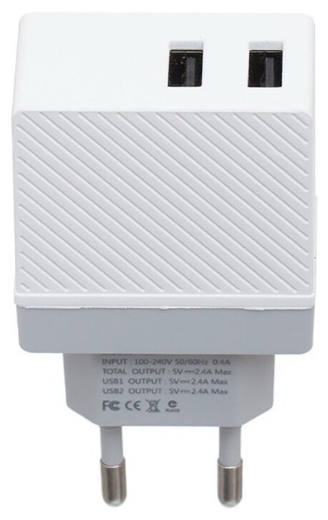 Сетевое зарядное устройство Hoco N7, 2xUSB, 2.1 А, белое