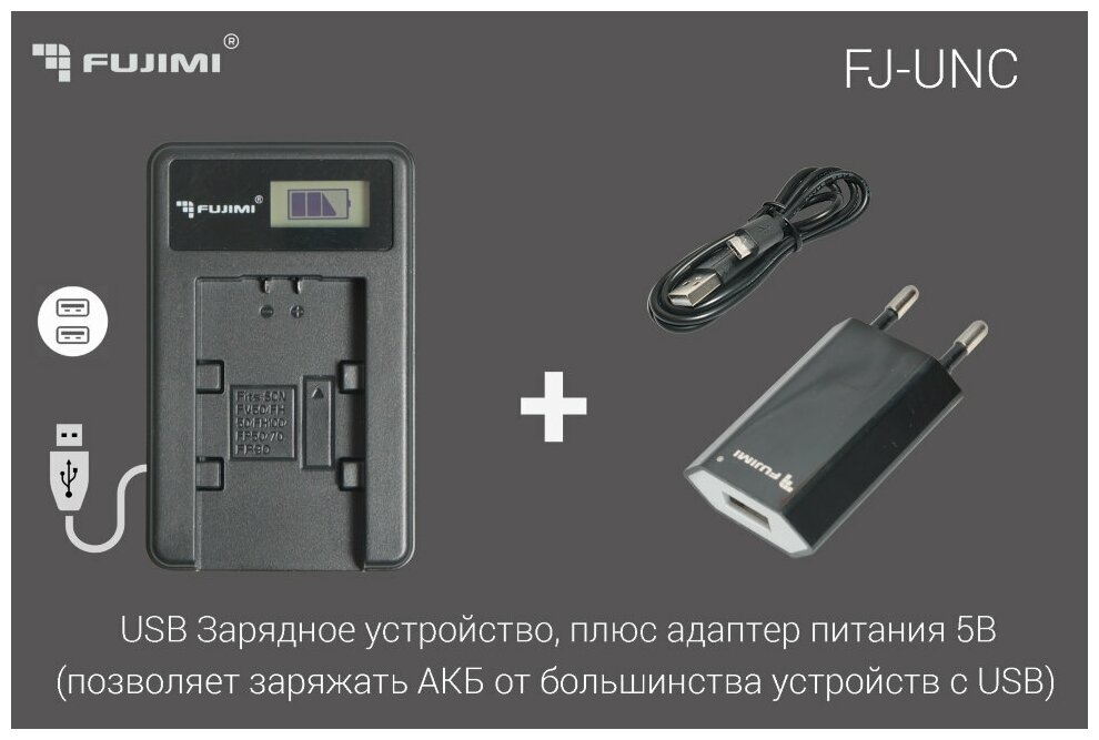 Зарядное устройство от USB и сети Fujimi FJ-UNC-BP-511A + Адаптер питания USB мощностью 5 Вт (USB, ЖК дисплей, система защиты)