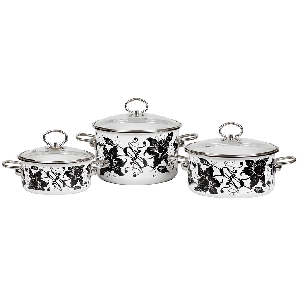 Набор кастрюль Сибирские товары Пионы, эмалированные, 2, 3 и 4 л