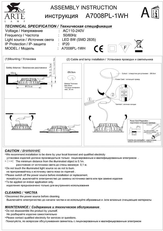 Встраиваемый светильник Arte Lamp Riflessione A7008PL-1WH информация: