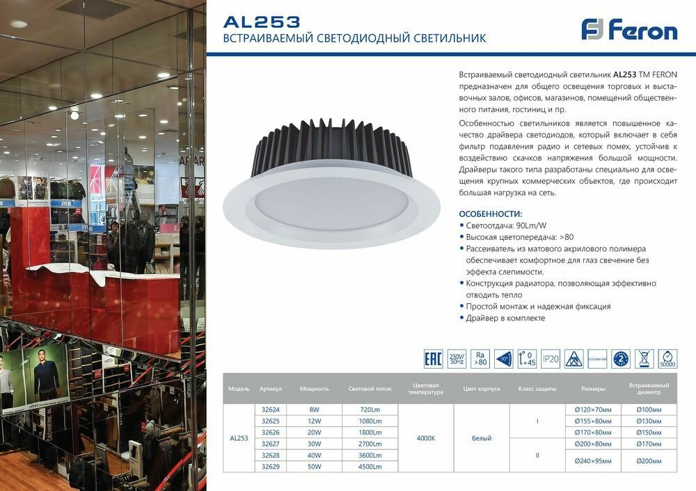 Светодиодный светильник встраиваемый Feron AL253 32627 информация: