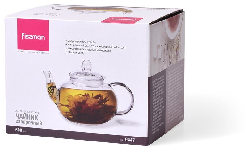 FISSMAN Стеклянный чайник с фильтром 600мл 9447 информация: